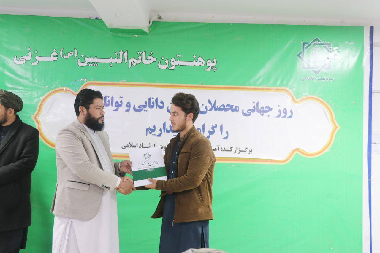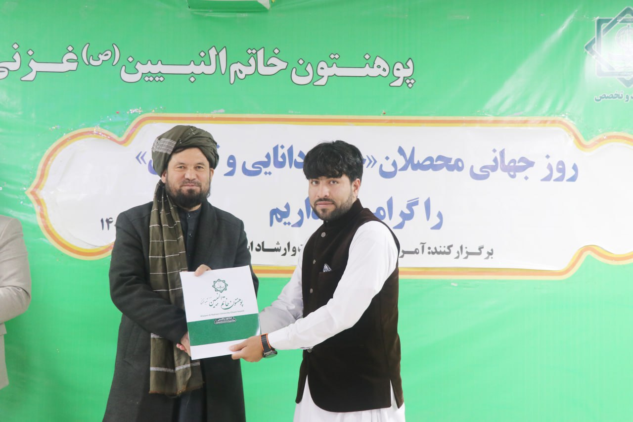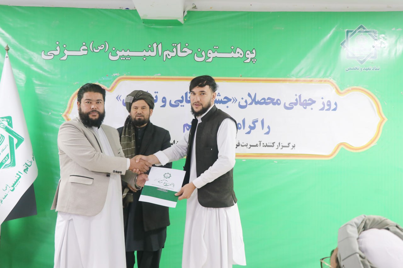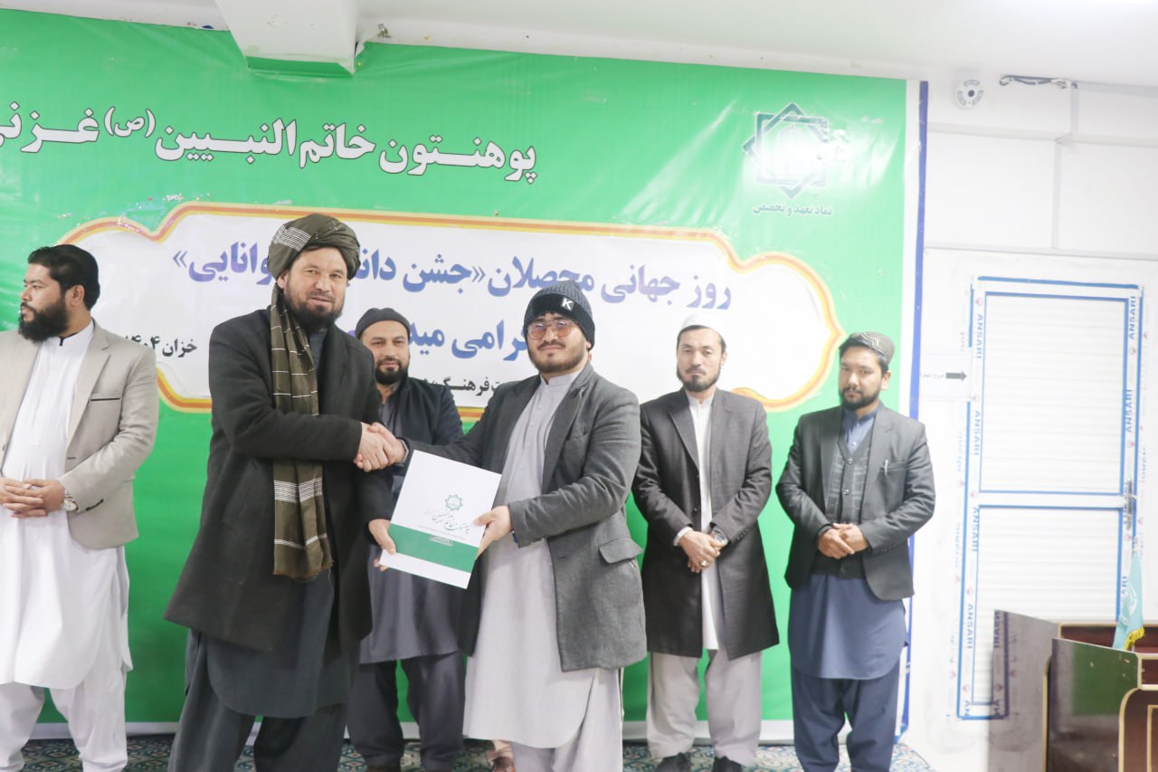 بخش دیگر این برنامه، تقدیر از محصلان برنده در مسابقات کتابخوانی پوهنتون (که توسط آمریت فرهنگی و دانشکده های اقتصاد، طب معالجوی و حقوق و علوم سیاسی برگزار شده بود)، محصلان با نظم و اخلاق دانشکده های اقتصاد، حقوق و علوم سیاسی و طب معالجوی، محصلان فعال فرهنگی و همکار با آمریت فرهنگی در سال ۱۴۰۴، تیم نایب قهرمان مسابقات تورنمنت فوتسال پوهنتون خاتم النبیین(ص) شعبه غزنی در سال ۱۴۰۴ و نمایندگان صنوف پوهنتون خاتم النبیین شعبه غزنی، بود که توسط معاونین، رؤسای دانشکده ها و اساتید پوهنتون صورت گرفت.