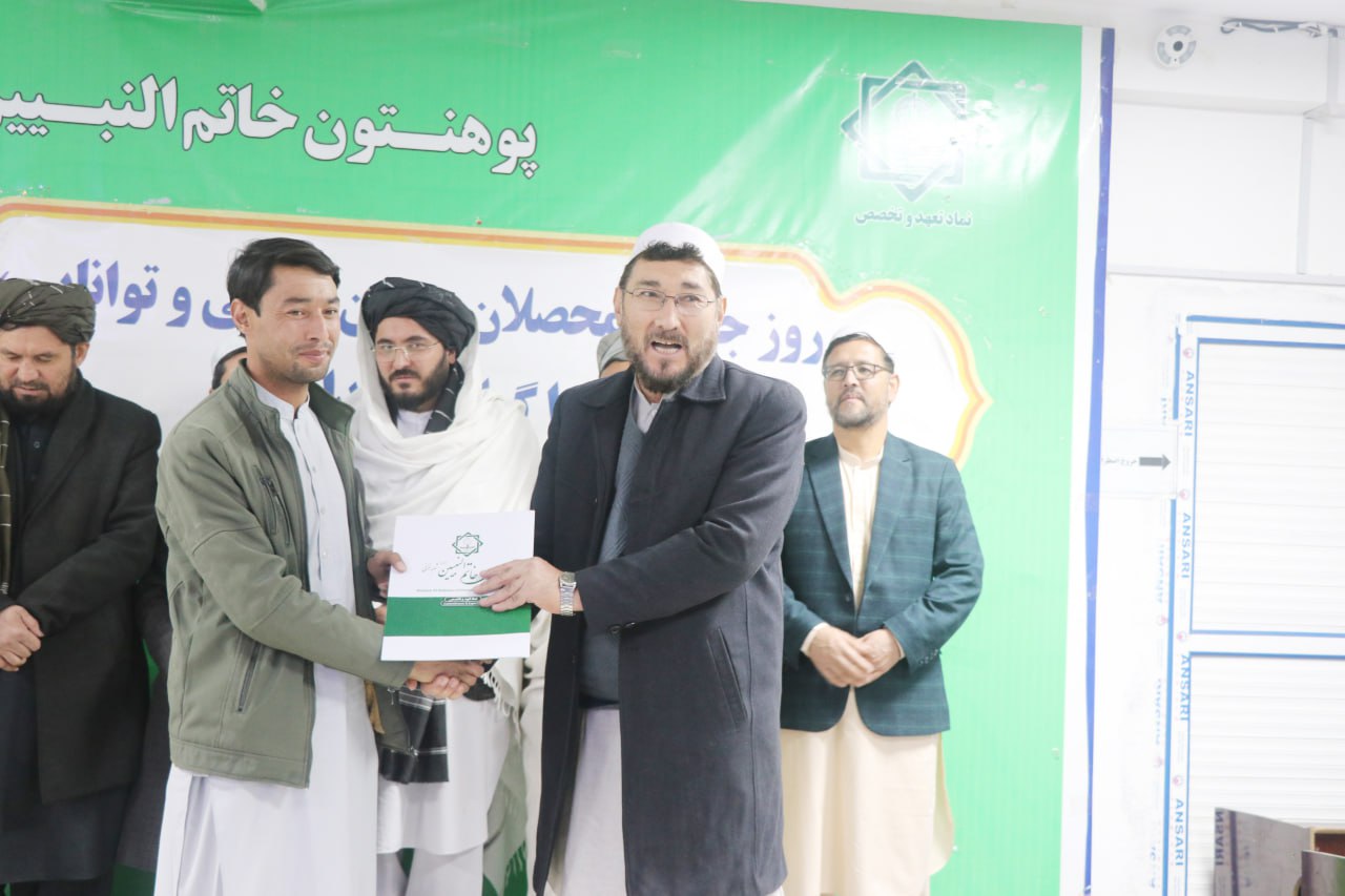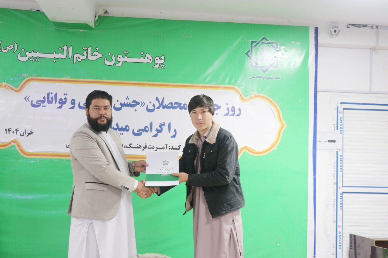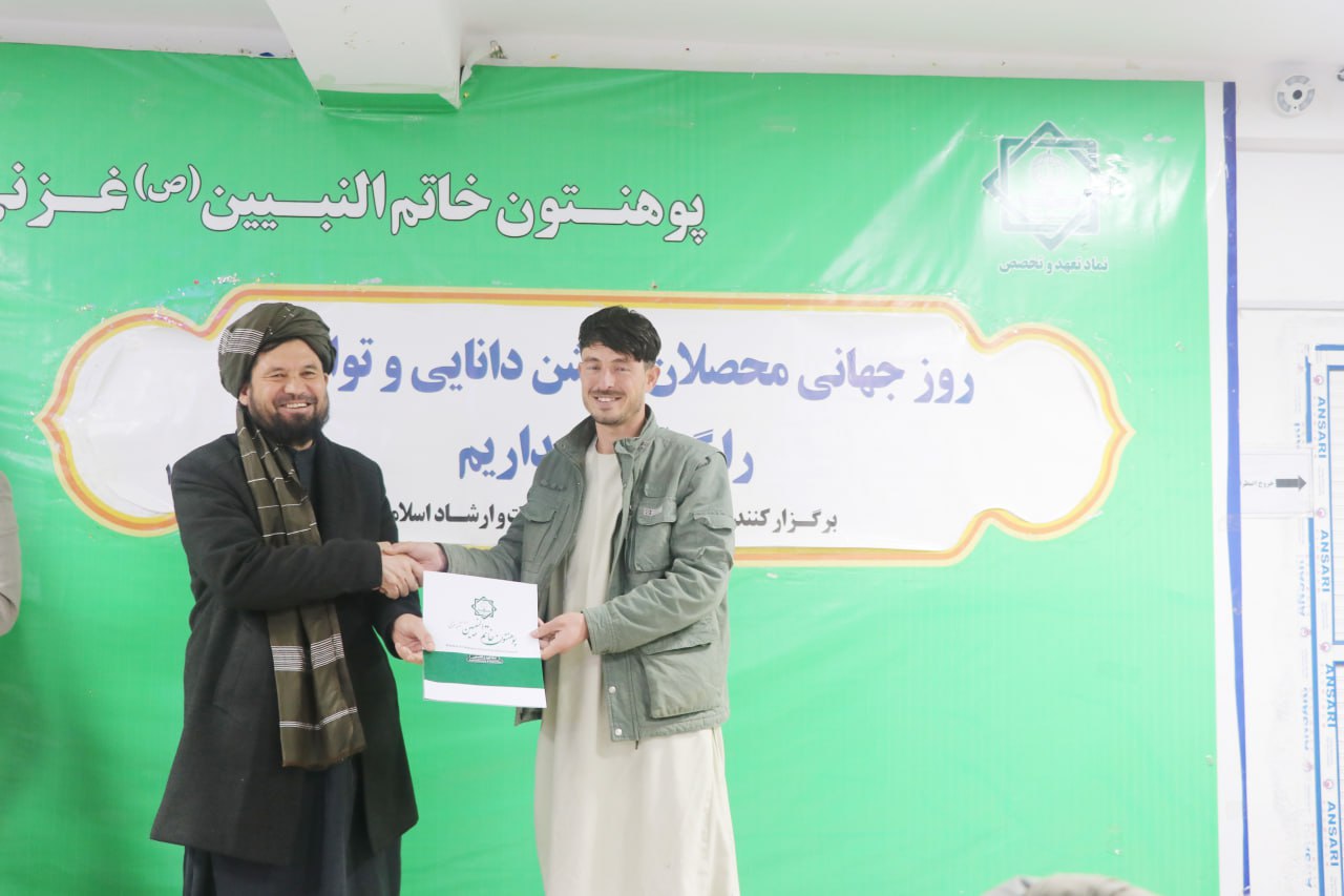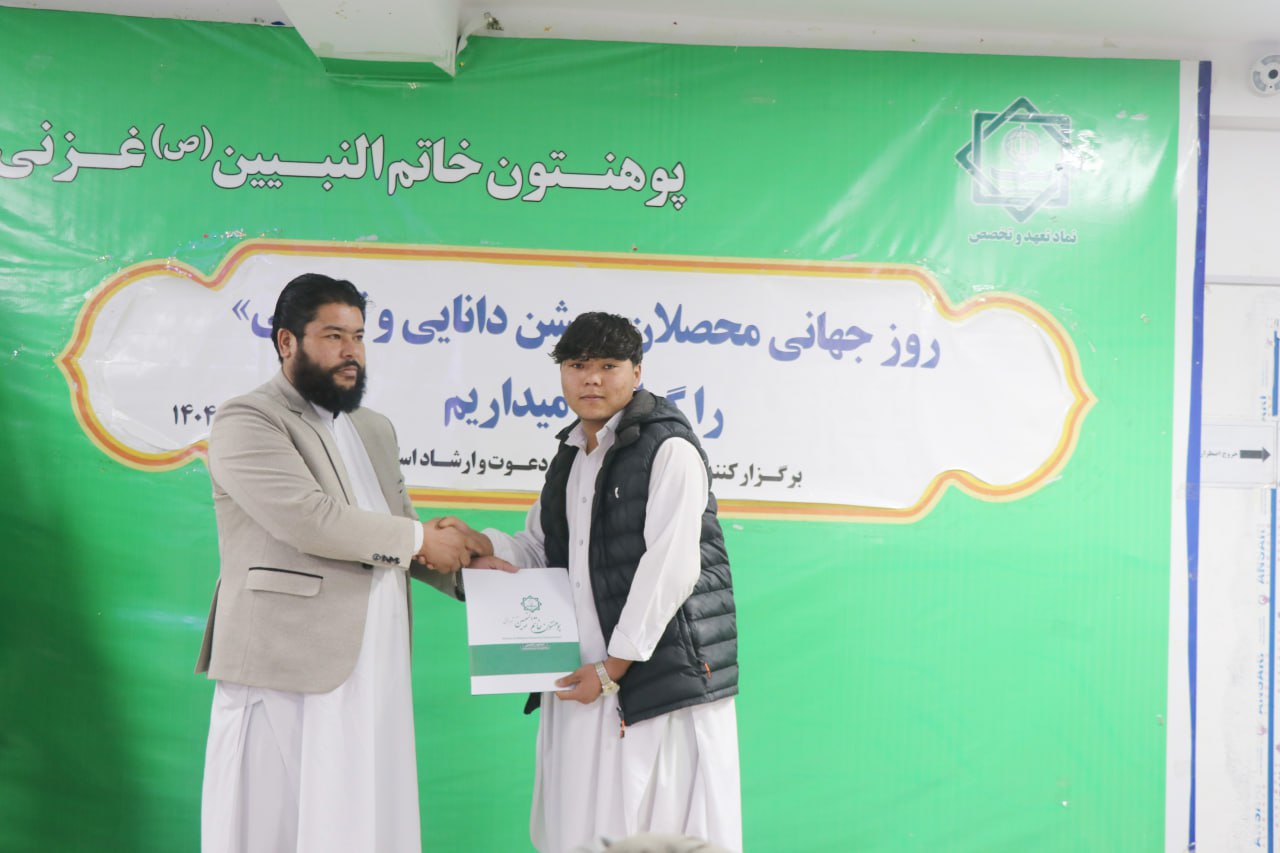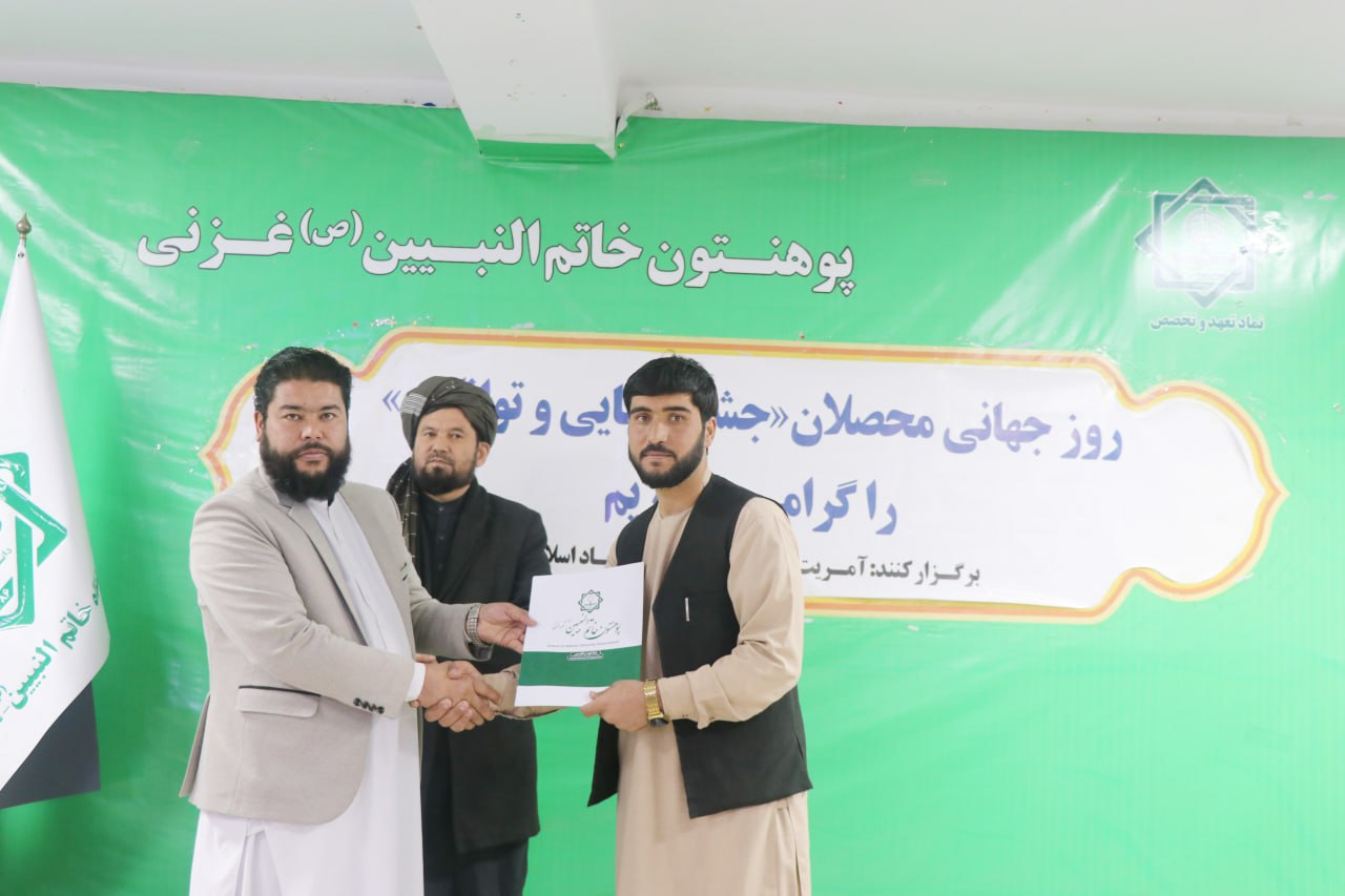 بخش دیگر این برنامه، تقدیر از محصلان برنده در مسابقات کتابخوانی پوهنتون (که توسط آمریت فرهنگی و دانشکده های اقتصاد، طب معالجوی و حقوق و علوم سیاسی برگزار شده بود)، محصلان با نظم و اخلاق دانشکده های اقتصاد، حقوق و علوم سیاسی و طب معالجوی، محصلان فعال فرهنگی و همکار با آمریت فرهنگی در سال ۱۴۰۴، تیم نایب قهرمان مسابقات تورنمنت فوتسال پوهنتون خاتم النبیین(ص) شعبه غزنی در سال ۱۴۰۴ و نمایندگان صنوف پوهنتون خاتم النبیین شعبه غزنی، بود که توسط معاونین، رؤسای دانشکده ها و اساتید پوهنتون صورت گرفت.